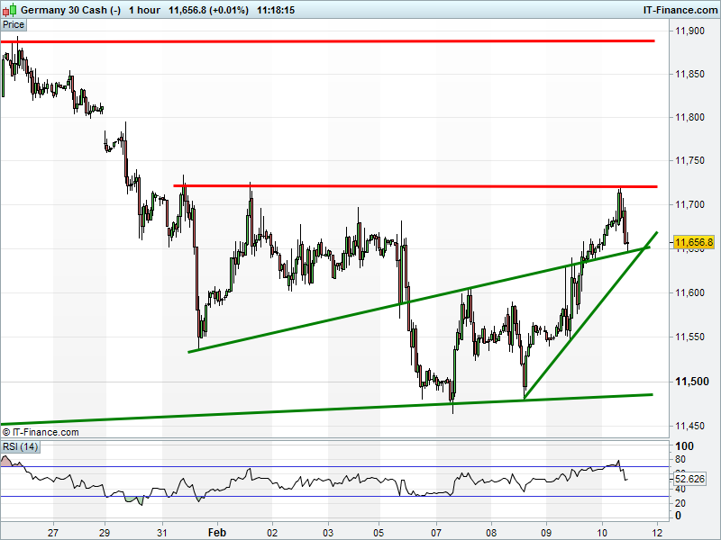 The DAX 30 is back at 11650 intersecting support. Bounce or breakdown?