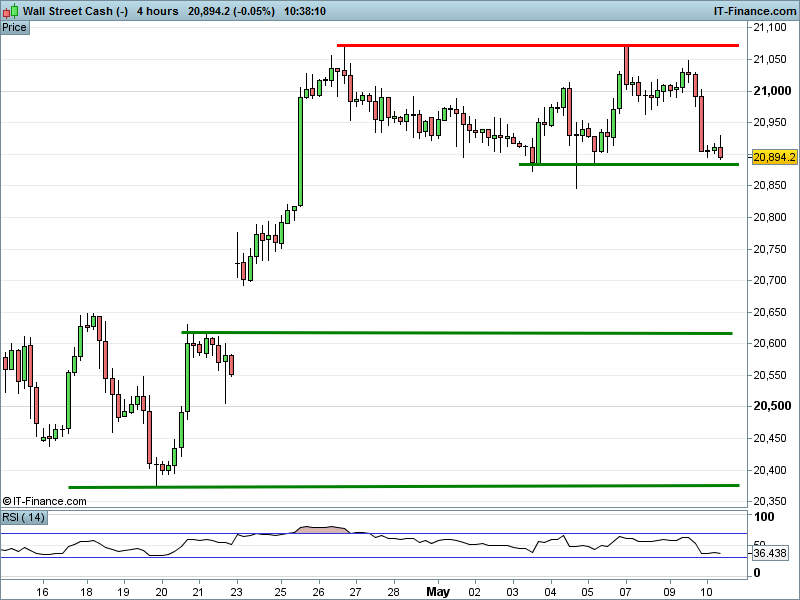 Dow Jones Futures testing 20885 support which may signal an end to late April/early May investor bullishness.