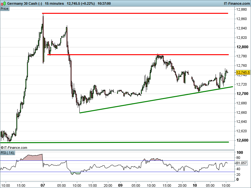 The UK 100 is marginally positive as Oilers BP & RDSb benefit from the aforementioned Crude Oil price rally, being joined by GSK (Senate FDA head approval), ABF (Sterling strongest since Sept.), BDEV (profits at upper end of guidance) and Banks LLOY, HSBA & BARC (Sterling strength) as the top risers. Holding back the index is a mixture of strong sterling hampered exporters (DGE, RB, BATS) and US-exposed stocks CRH and WPP. The German DAX is hovering around breakeven awaiting the latest driver to take it a leg higher or lower.