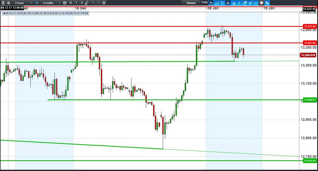 The UK Index 100 is hugging this morning’s fresh record highs at 7760. The DAX 30 found resistance at 13000. Dow Jones Futures are back just shy of Tuesday’s 25440 record high. Gold continues to consolidate $1315-$1325.