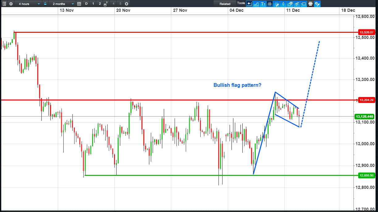 The DAX 30 could be in a new bullish flag at 13100 that helps it back to 13500