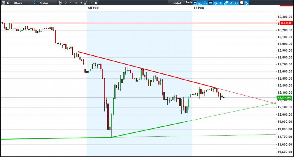 The DAX 30 is back below 12300 having succumbed to falling highs resistance
