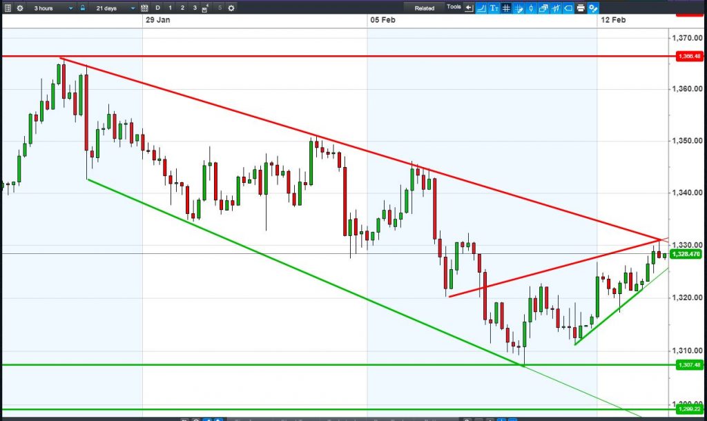 Gold is at a $1330 crossroads its rebound channel having encountered Jan falling highs resistance.