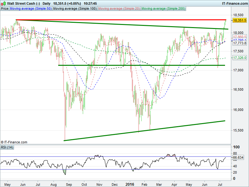 Wall Street/Dow Jones futures are holding around fresh all-time intraday highs 18372. Retrace or further to run?