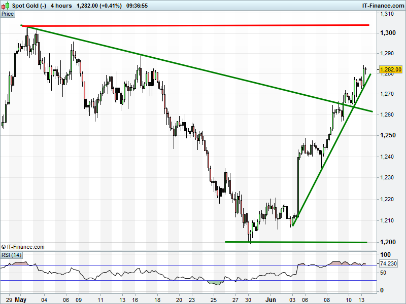 The UK 100  is toying with a bullish breakout at 6100 to clear the first hurdle for a recovery rebound. The DAX30 has made a bullish bounce back above 9700 but already found resistance at 9775. Wall Street/Dow Jones futures have made a bullish bounce from 3-week rising lows at 17800. Gold continues to benefit from risk aversion with support at $1280 in a strong uptrend towards 2016 highs of $1305.