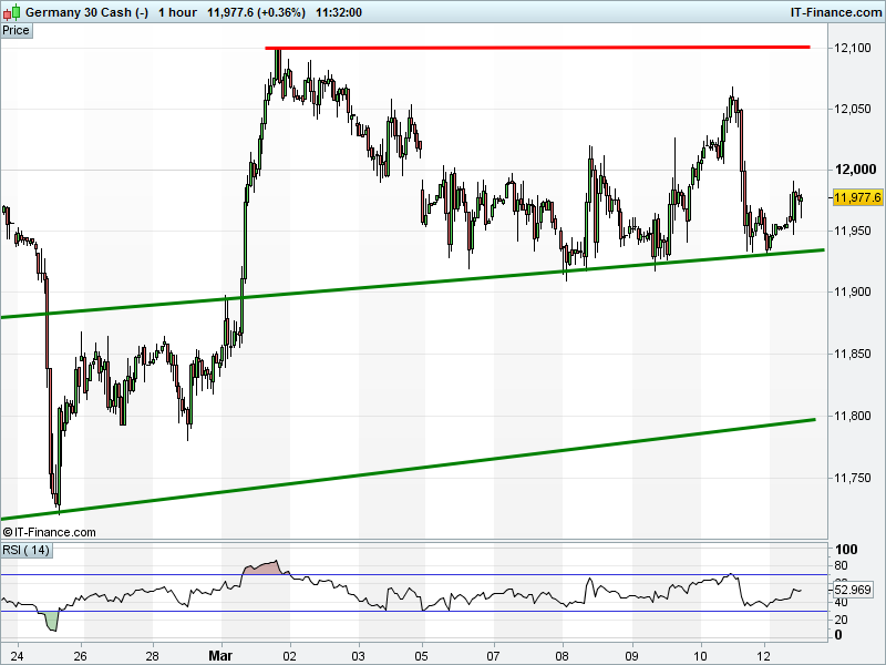 DAX 30 has bounced from 11950 but has yet to trouble 12000.