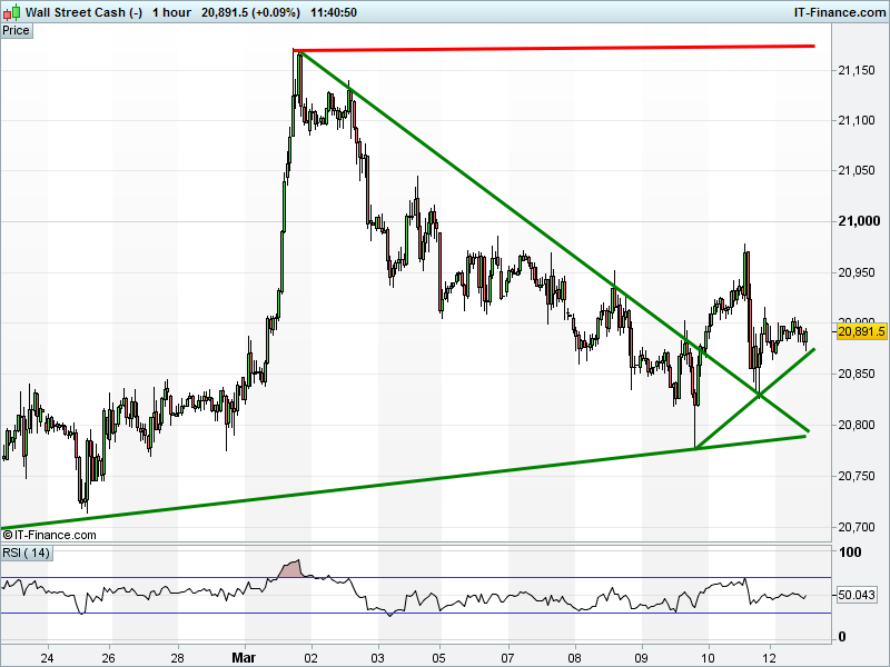 Dow Jones Futures are holding rising support 20870 but with resistance at 20900.