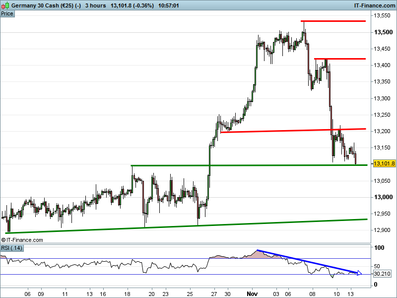 The DAX 30 has fallen through 13,100 resistance-turned-support.