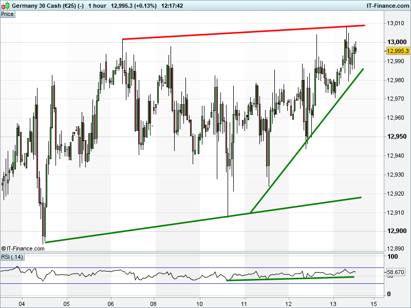 The DAX 30 continues to test 13000 for fresh record highs.