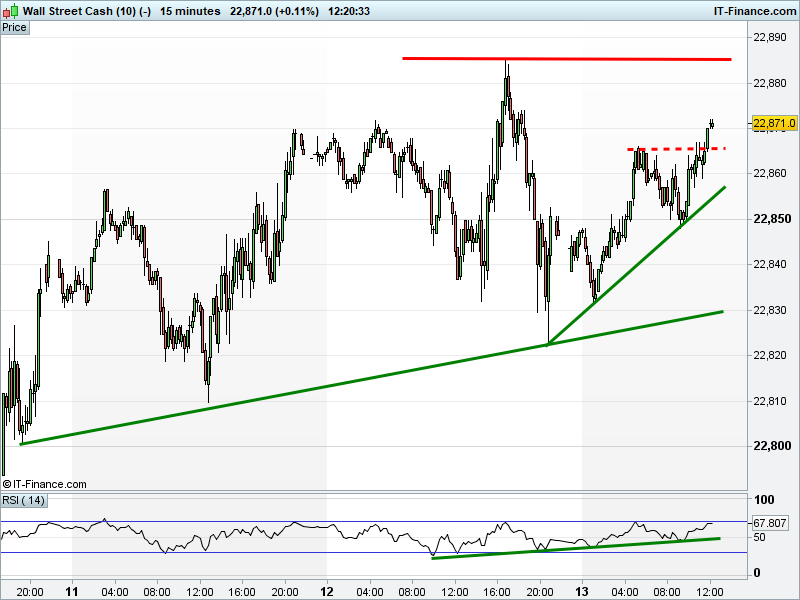 Dow Jones Futures has broken back above 22865, still edging towards 22900