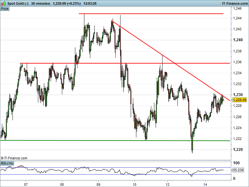 Watch levels: Bullish $1231, Bearish $1225