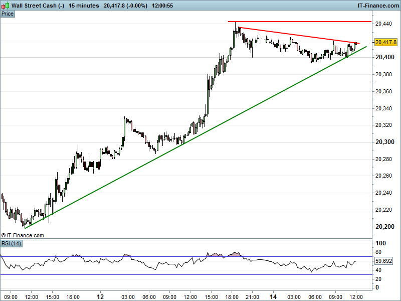 Dow Jones Futures are pointing towards a flat open on Wall Street having fallen from yesterday’s intra-day highs of 20,430, as investors remain cautious ahead of Yellen’s testimony at 3pm.
