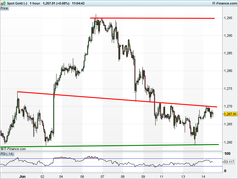Gold bounce has found a hurdle by way of June intersecting resistance $1270. But is that a bullish inverse H&S reversal pattern forming, potentially taking it up to $1280?