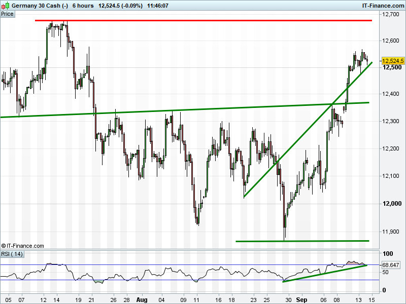 The DAX 30 remains above 12500 thanks to intersecting rising support.