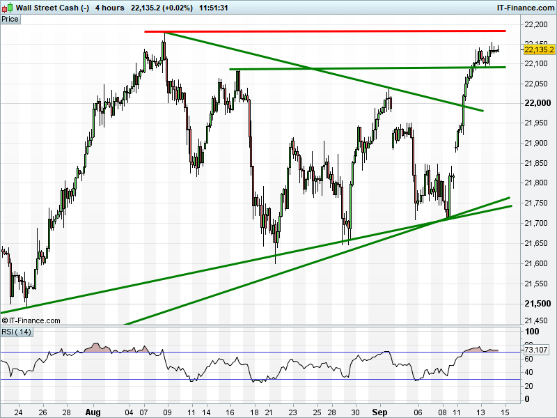 Dow Jones Futures have moved up for a bullish flirt with 22150.