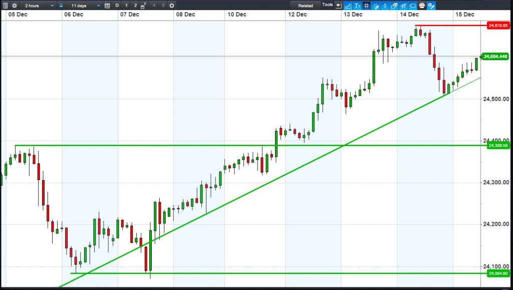 The UK Index 100 is holding its bounce off 7435. The DAX 30 may have bottomed out at 13000. Dow Jones Futures have bounced off 24500 to resume their uptrend. Gold is making a bullish test of $1259.