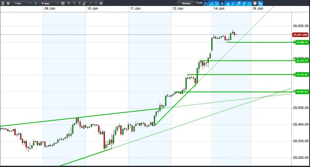 Dow Jones Futures are continue their northerly step-up, now flirting with 26000.