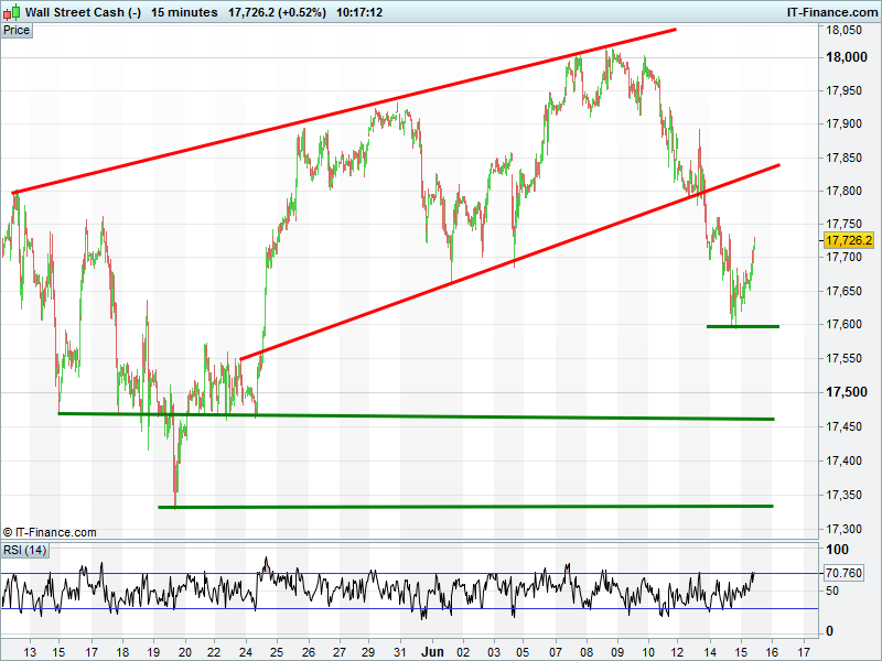 The UK 100 has bounced from 5900 and looks set for a test of the 6000 we broke below yesterday. The DAX30 continues its bounce from 9500 thanks to shallow rising support. Can 9800 be regained? Wall Street/Dow Jones futures have seen their turnaround recovery break back above 17700 and early June lows. Gold has pulled back on improved market appetite for risk but still needs to breach $1280 and $1276 to kill off the uptrend.