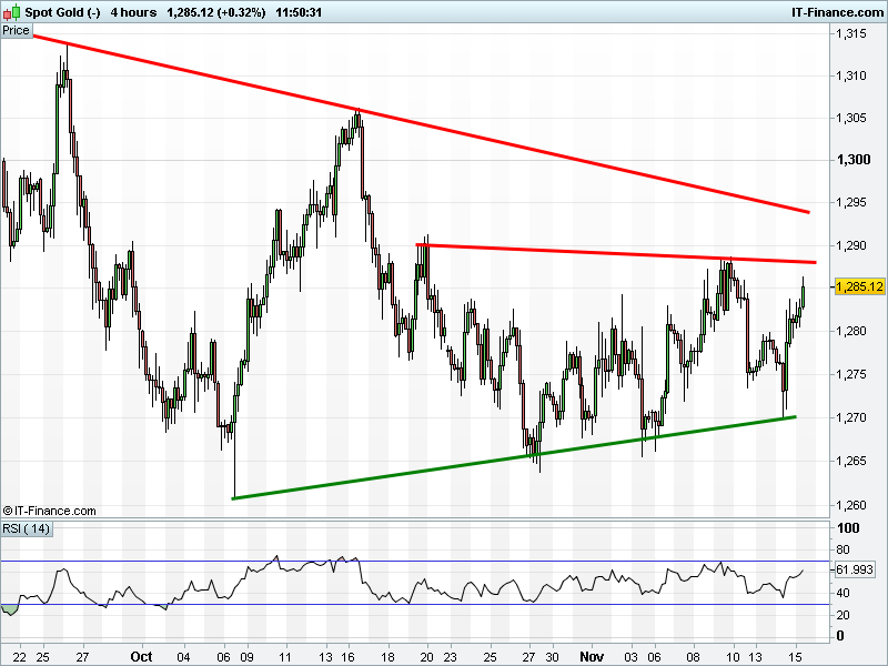 Gold trades $1285 highs for this week thanks to the risk off mood and weaker USD.