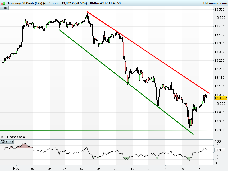 The DAX 30 bounce has been checked at 13050. Back to recent lows?