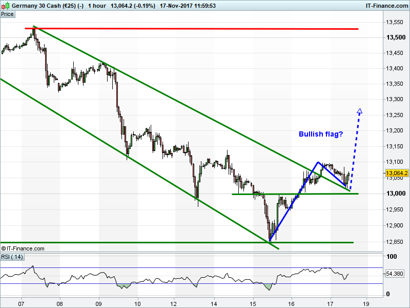 The DAX 30 has found support above 13000 in a potential bullish flag towards 13500.