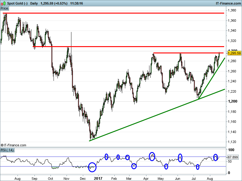 Gold is testing 4-month resistance at $1295.