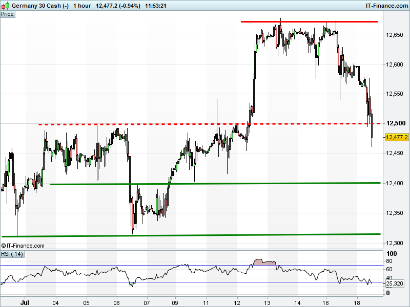 The DAX 30 has broken below 12500, potentially on its way back to 12400