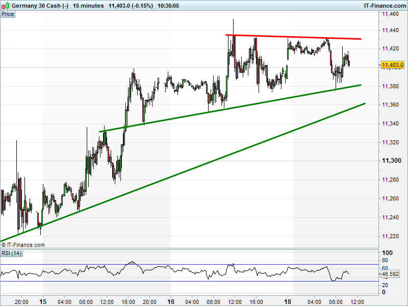The UK 100 is testing 7000, still holding rising support at 6990. Narrow range. Bullish continuation pattern?
