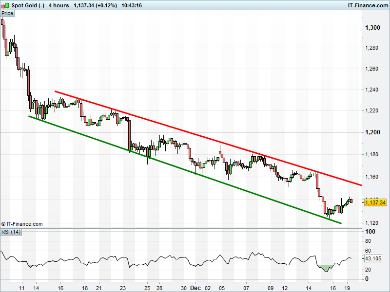 Gold has bounced but already found resistance at $1140 to keep its 6-week downtrend on track.