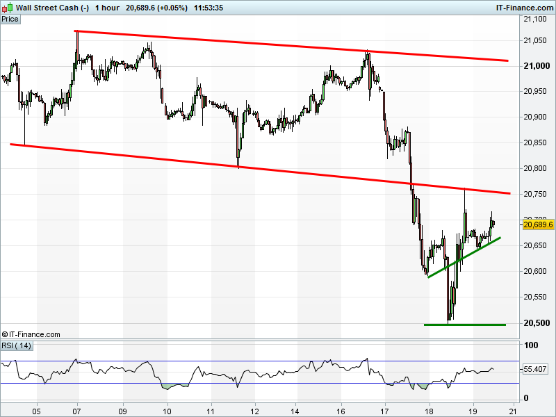 Dow Jones Futures flirting with 20700, holding uptrend.