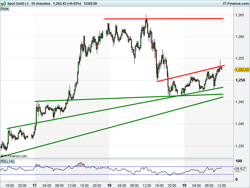 Gold’s is in a rising channel $1249-1254. Might it pull back from the ceiling to revisit the floor, before resuming the uptrend?