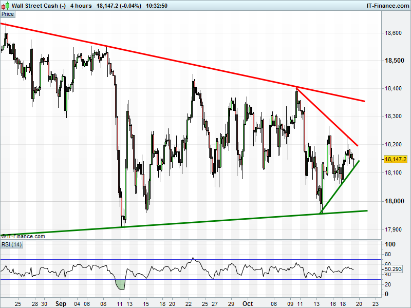 Dow Jones Futures remain sideways in the middle of their 2-month narrowing range 17950-18350. Rising lows or falling highs – which will prevail?