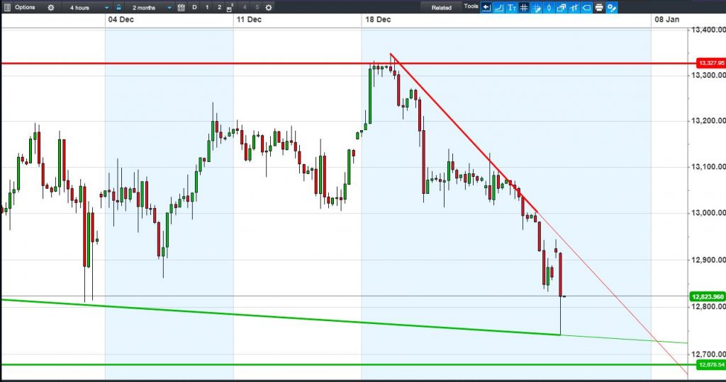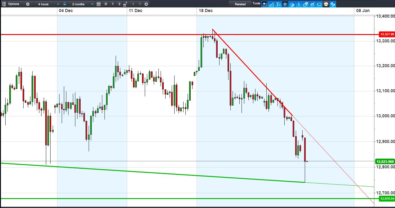 The DAX 30 has bounced off 12745, but still in a mid-Dec downtrend