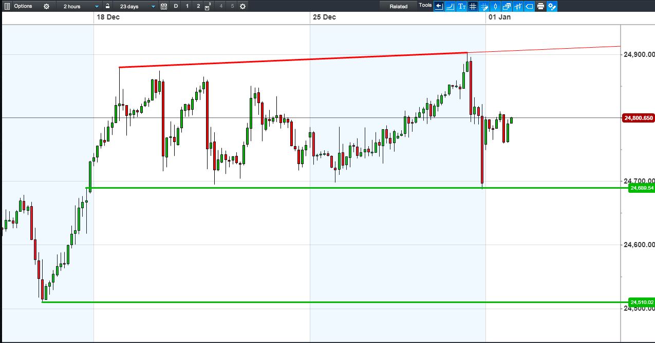 Dow Jones Futures are back in the middle of their 24700-24900 range. Higher or lower?