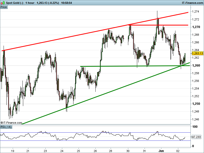 Gold is rallying from support at $1260 having fallen from Wednesday’s 5-week highs.