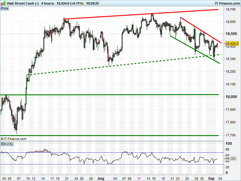 Dow Jones futures have rallied back close to test the ceiling of their 3-week falling channel at 18435.