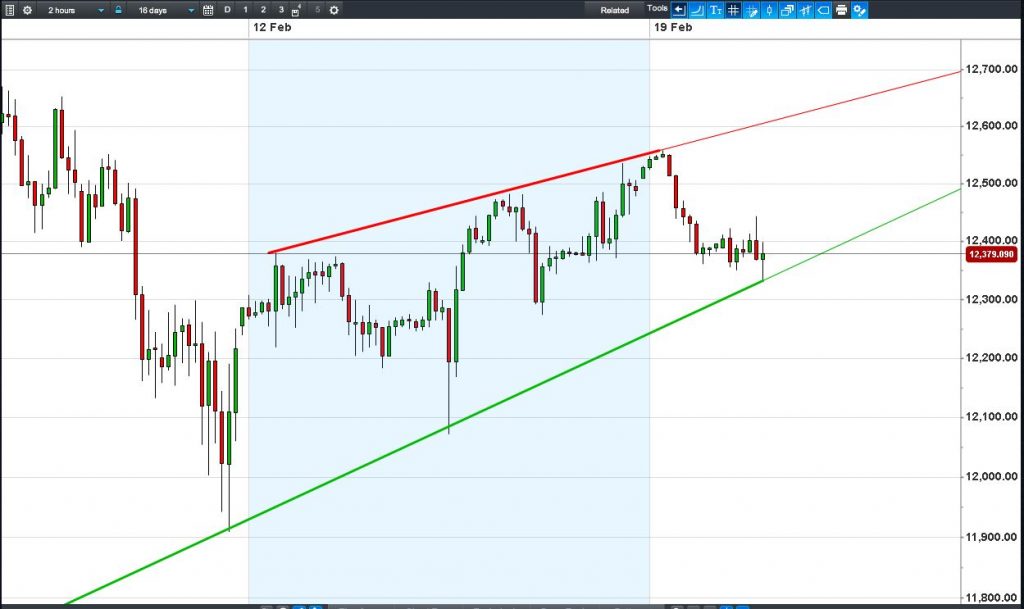 The DAX 30 has has bounced off Feb rising support at 12335.