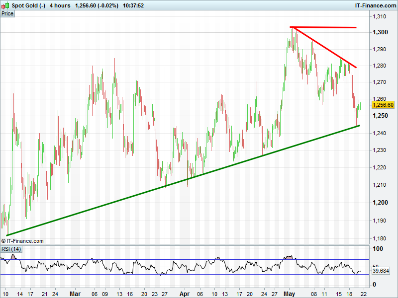 Gold has found support at $1245 to resume its 3-month uptrend as yesterday’s dollar hindrance eases. Upside potential of $20 before we encounter May falling highs resistance.