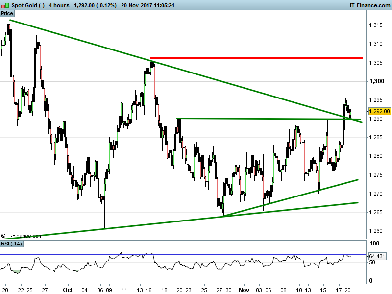 Gold is holding above a duo of support at $1290 after Friday’s breakout.