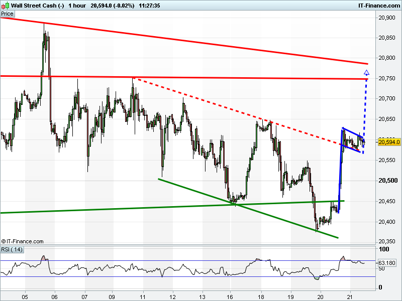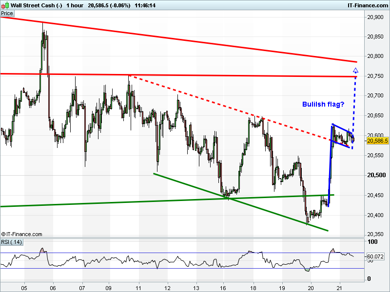 Dow Jones Futures are holding a break above falling resistance and could be in the midst of a bullish flag pattern to 20750