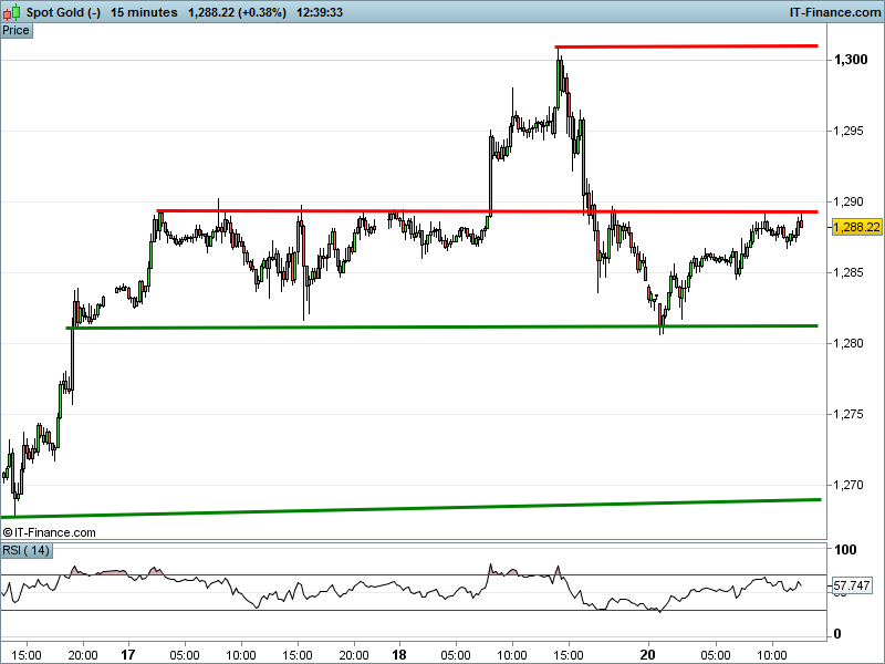 Gold is attempting a second challenge of $1289.5 resistance, however has yet to make any headway.
