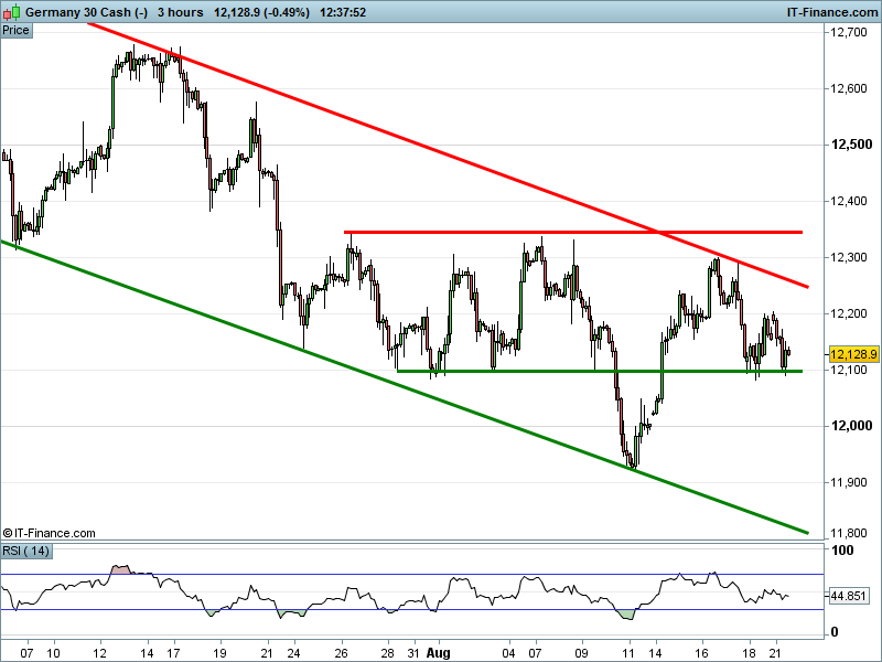 The DAX 30 has failed to capitalise after also surviving a test of multi-month support at 12,100.