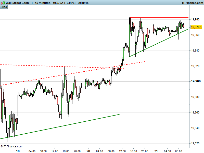 Dow Jones Futures have fallen back after rallying at European market open. Now consolidating at 19960-19975 for another attempt at 20,000. Will today be the day or will Italy spoil the party?