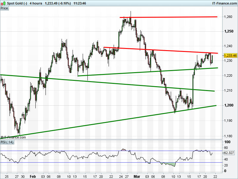 Watch levels: Bullish $1236, Bearish $1231