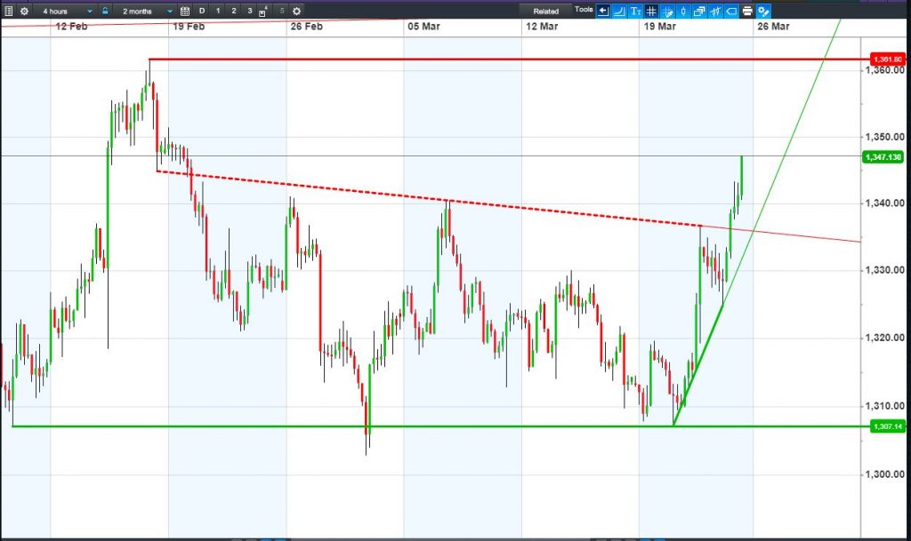 Gold has broken above $1340 thanks to USD weakness and safe-haven seeking.