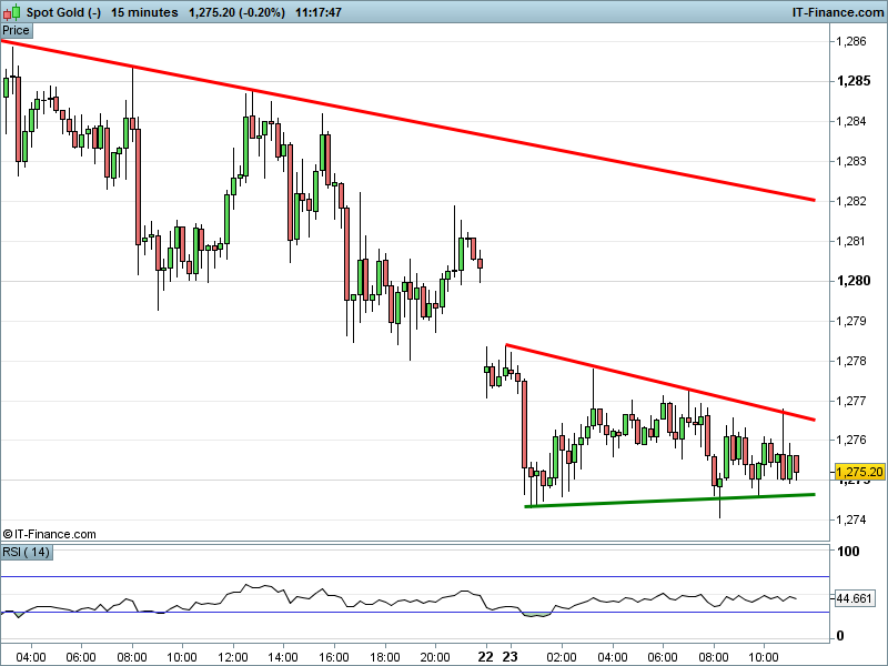 Gold is narrowing between $1274.5-1276.5 as a stronger USD and waning safe-haven seeking hurt demand.