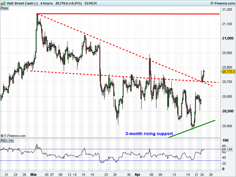 Dow Jones Futures have broken above 20700 thanks to a bullish flag pattern we highlighted last week. Can it power on, back to the highs?