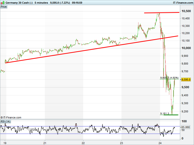 The DAX30 has bounced almost 5% to regain 9600. Can the gains continue towards 10000?