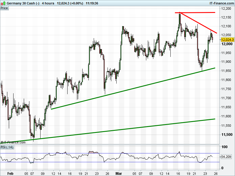 The UK Index 100 remains with a 3-day shallow rising channel. The DAX 30 rebound has been checked at 12050. Dow Jones Futures are holding their uptrend from 20600. Gold continues to struggle with $1250 resistance from 9-month falling highs and the 200-day moving average.