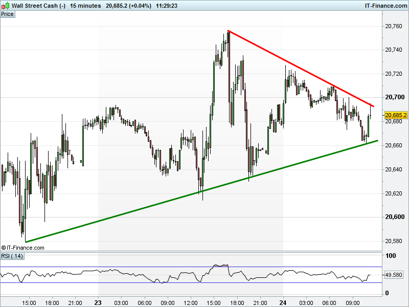 Dow Jones Futures are holding their uptrend from 20600. But which way will they break?